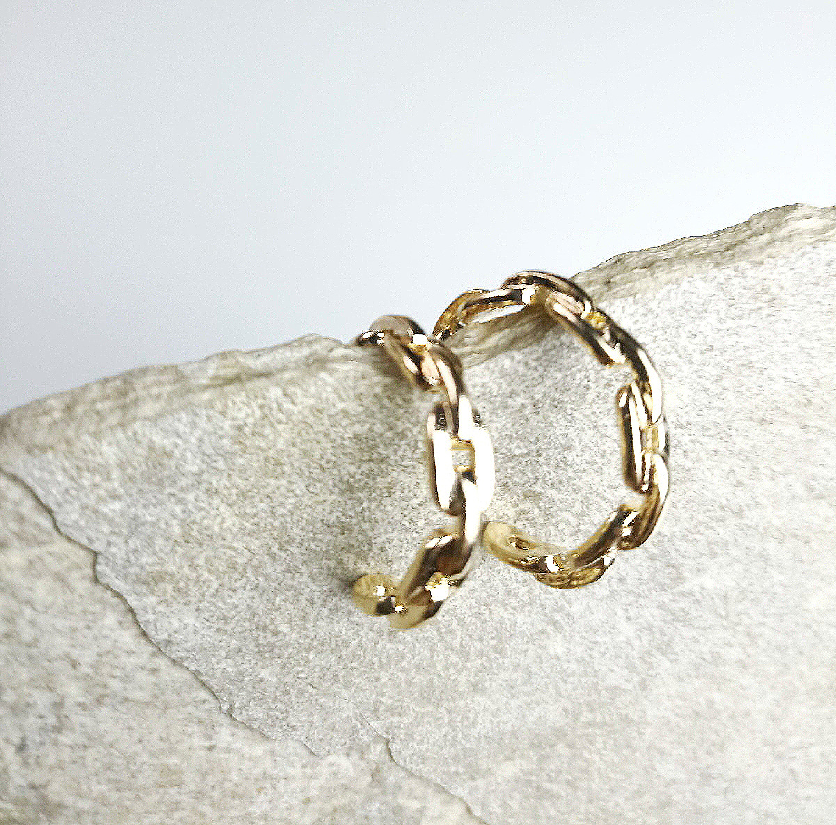 De creolen hebben een zgn. paperclip schakel, die je ook veel ziet bij armbanden en kettingen ( ook bij Roos & Tijn verkrijgbaar).