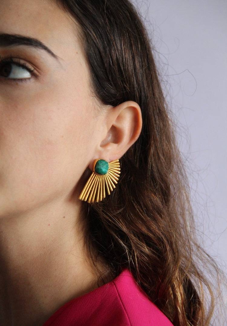 Atelier Albertine18k vergulde waaier oorbellen met labradoriet
