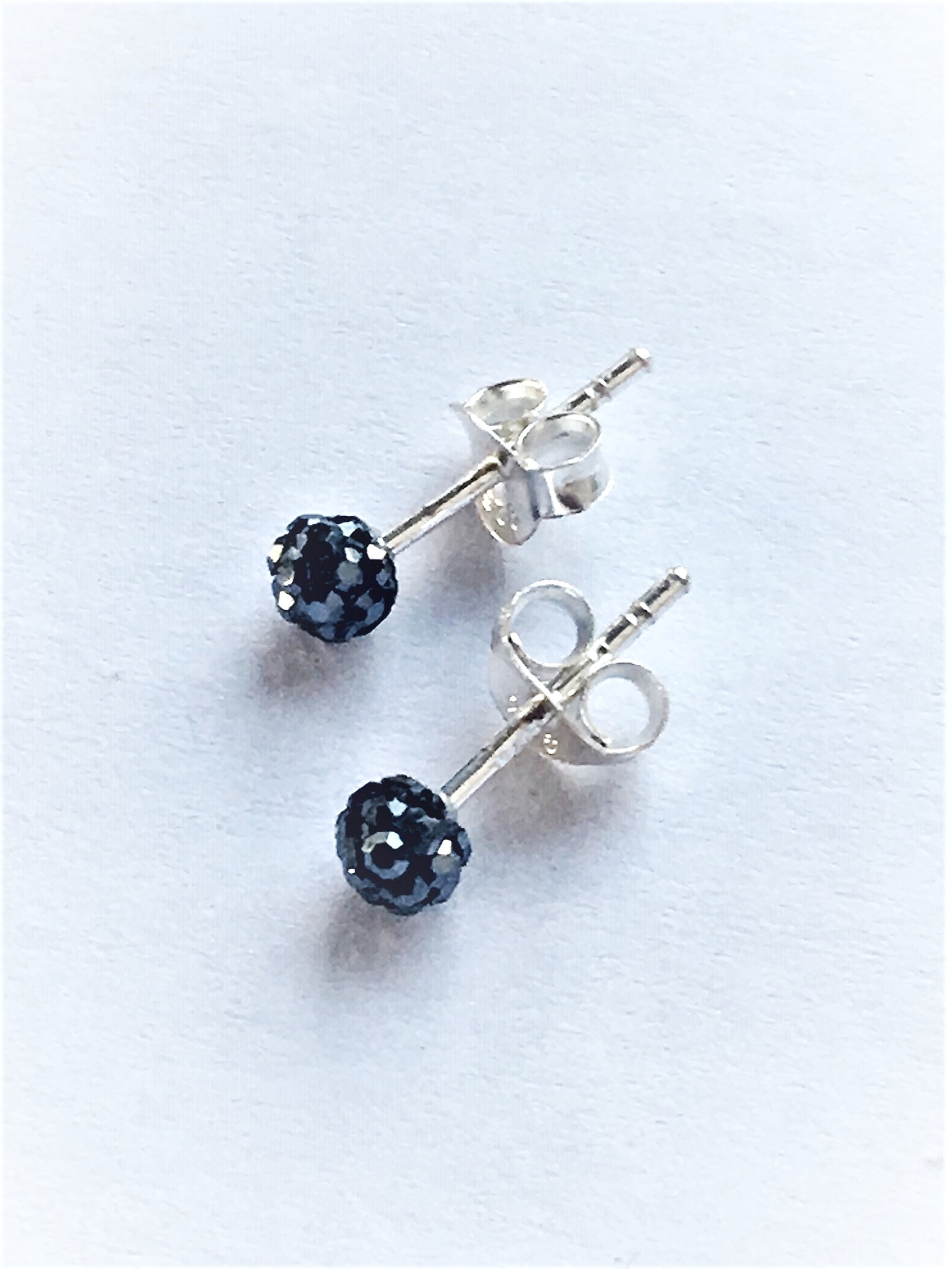 Echt sterling zilveren oorbellen met een bolletje van zwarte kristallen.