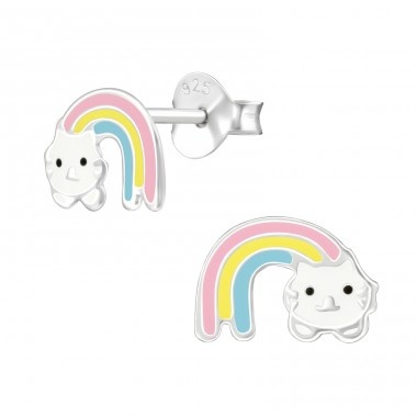 Echt sterling zilveren oorbellen voor meisjes: een katje onder de regenboog-oorbellen.