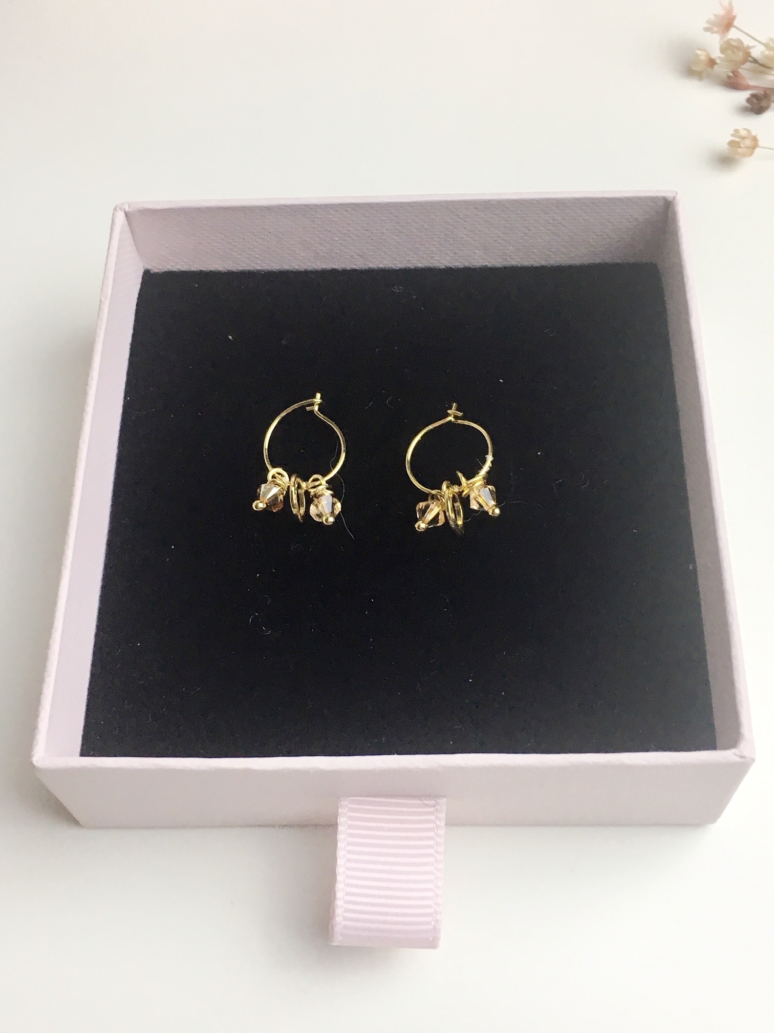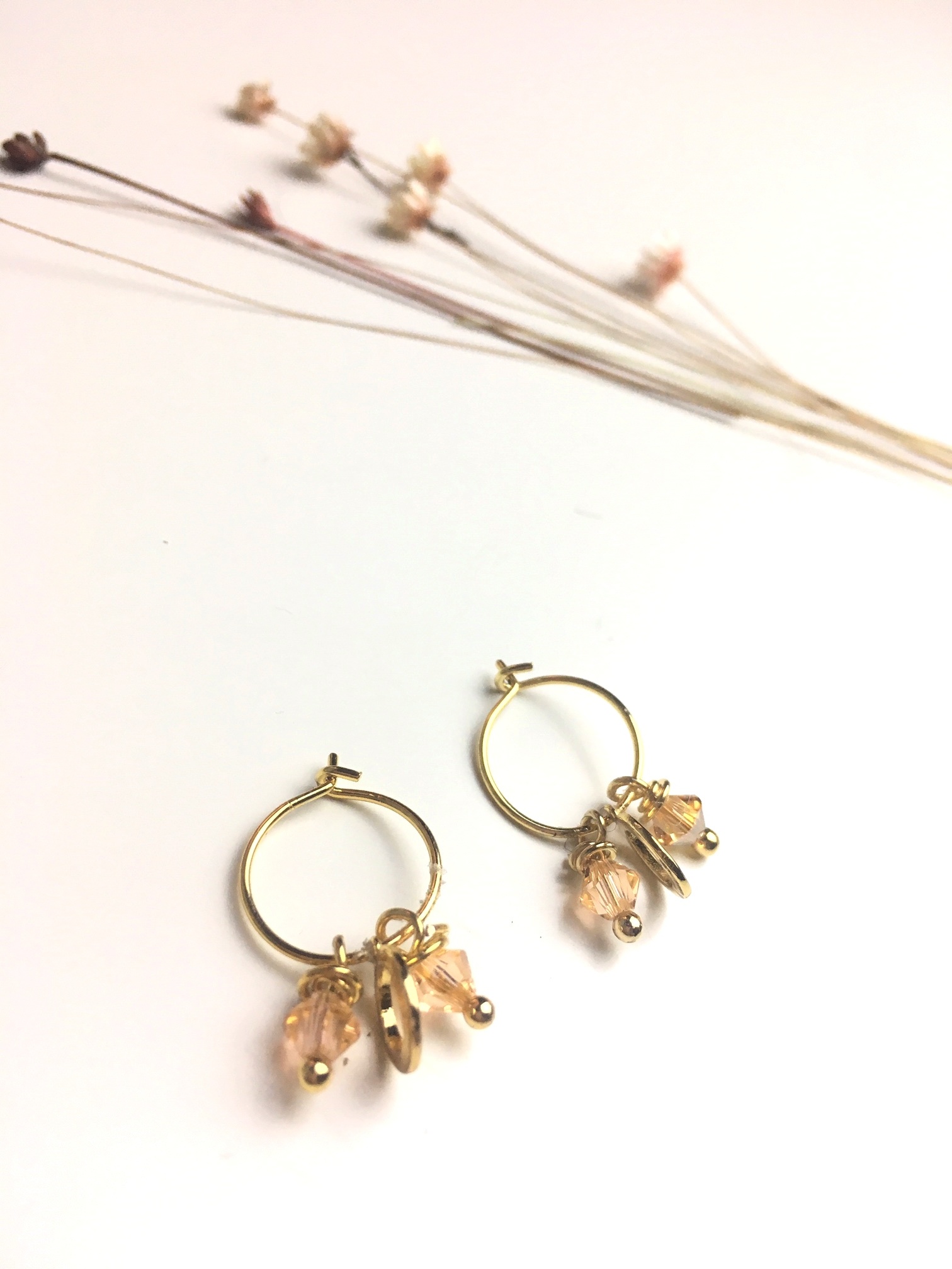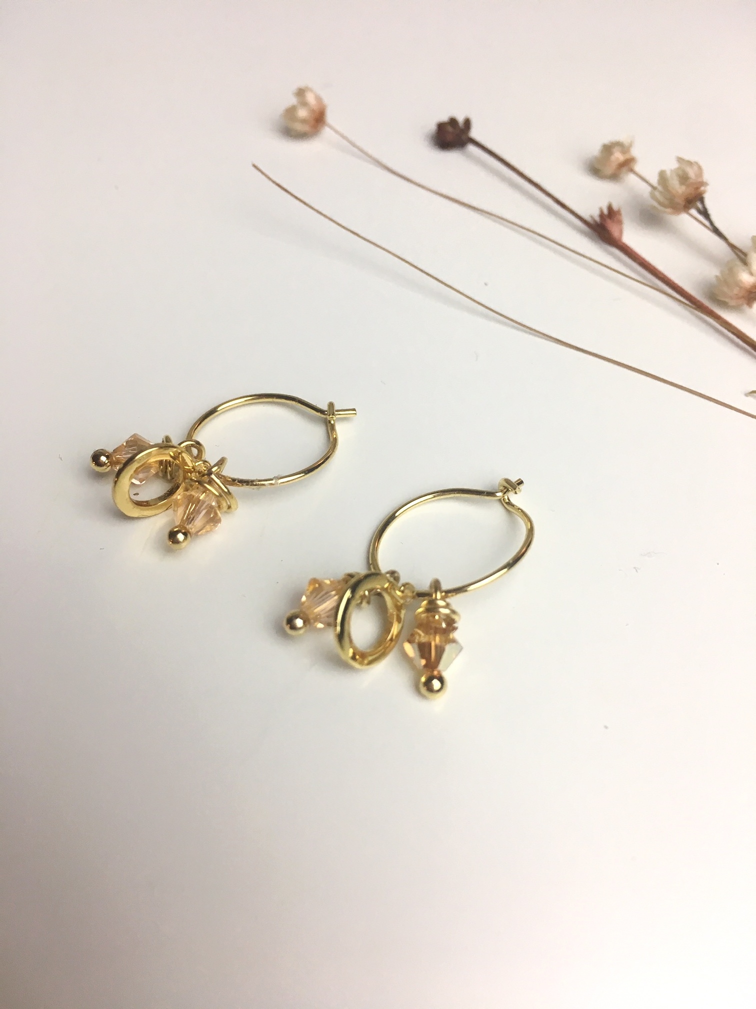 Handgemaakte oorringetjes met Champagne Swarovski kristallen - Roos & Tijn Designerstore