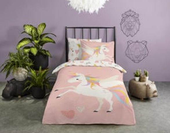 Het dekbedovertrek unicorn wordt geleverd met een kussensloop.