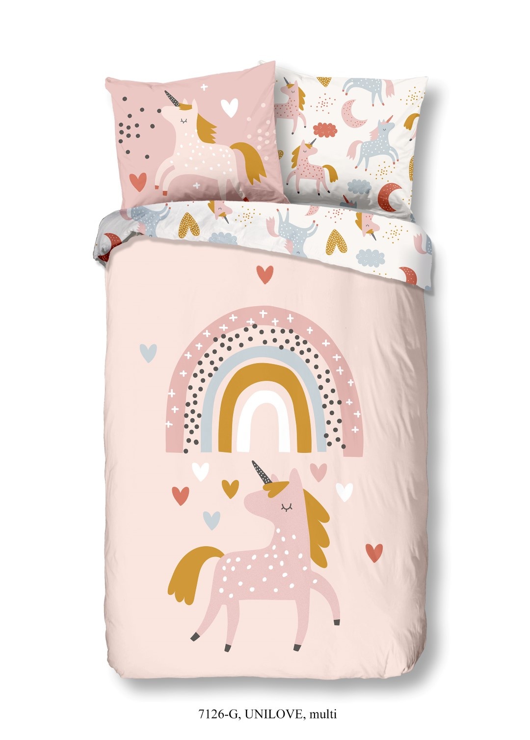 Het dekbedovertrek unicorn wordt geleverd met een kussensloop.