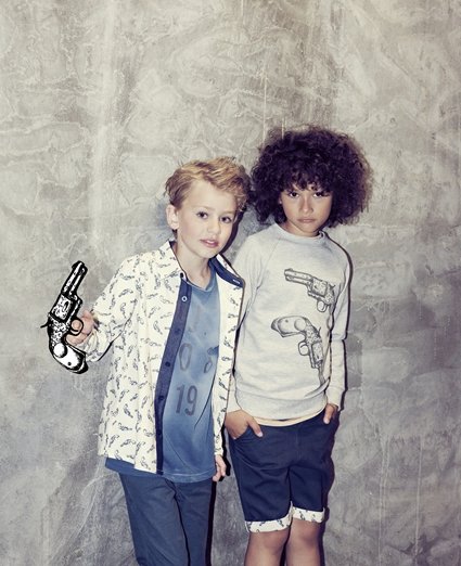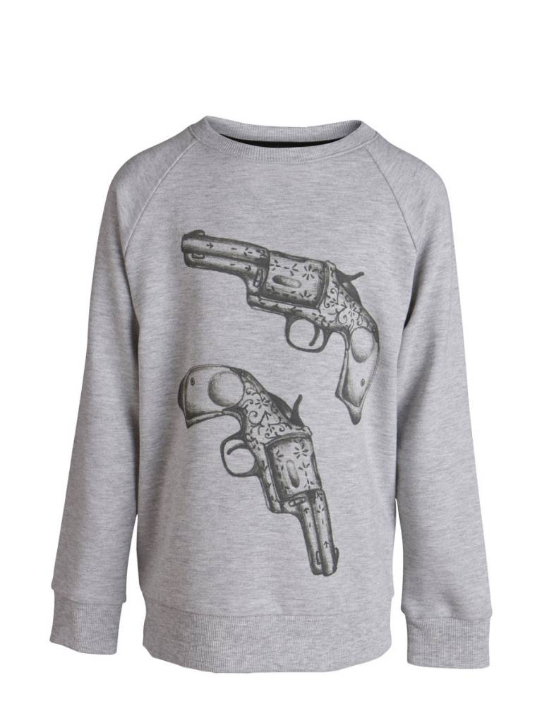 Stoere sweater van Little Pieces Boys met fantasie pistolen print. Model Jano.