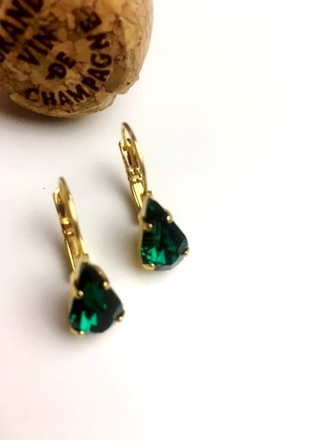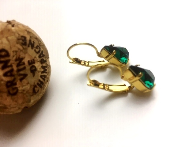 Atelier AlbertineVerfijnde Goud Vergulde oorbellen Emerald Swarovski Crystal